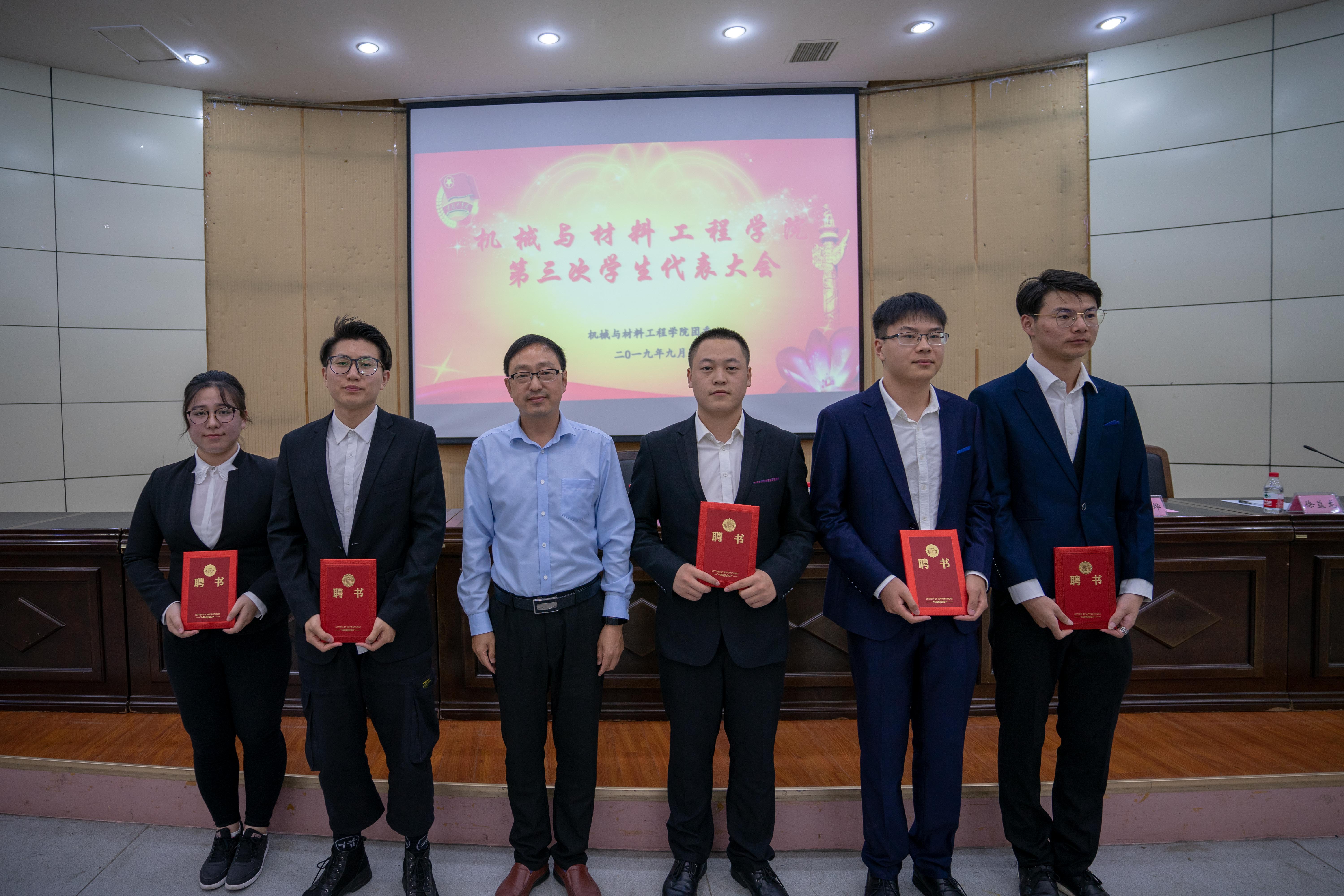 最后,全体学生代表选举并产生williamhill英国第二十届学生会主席团成员。伴随着校歌《辉煌》,党委李炜副书记为第十九届团委学生会主席团颁发聘书。至此,大会顺利闭幕。