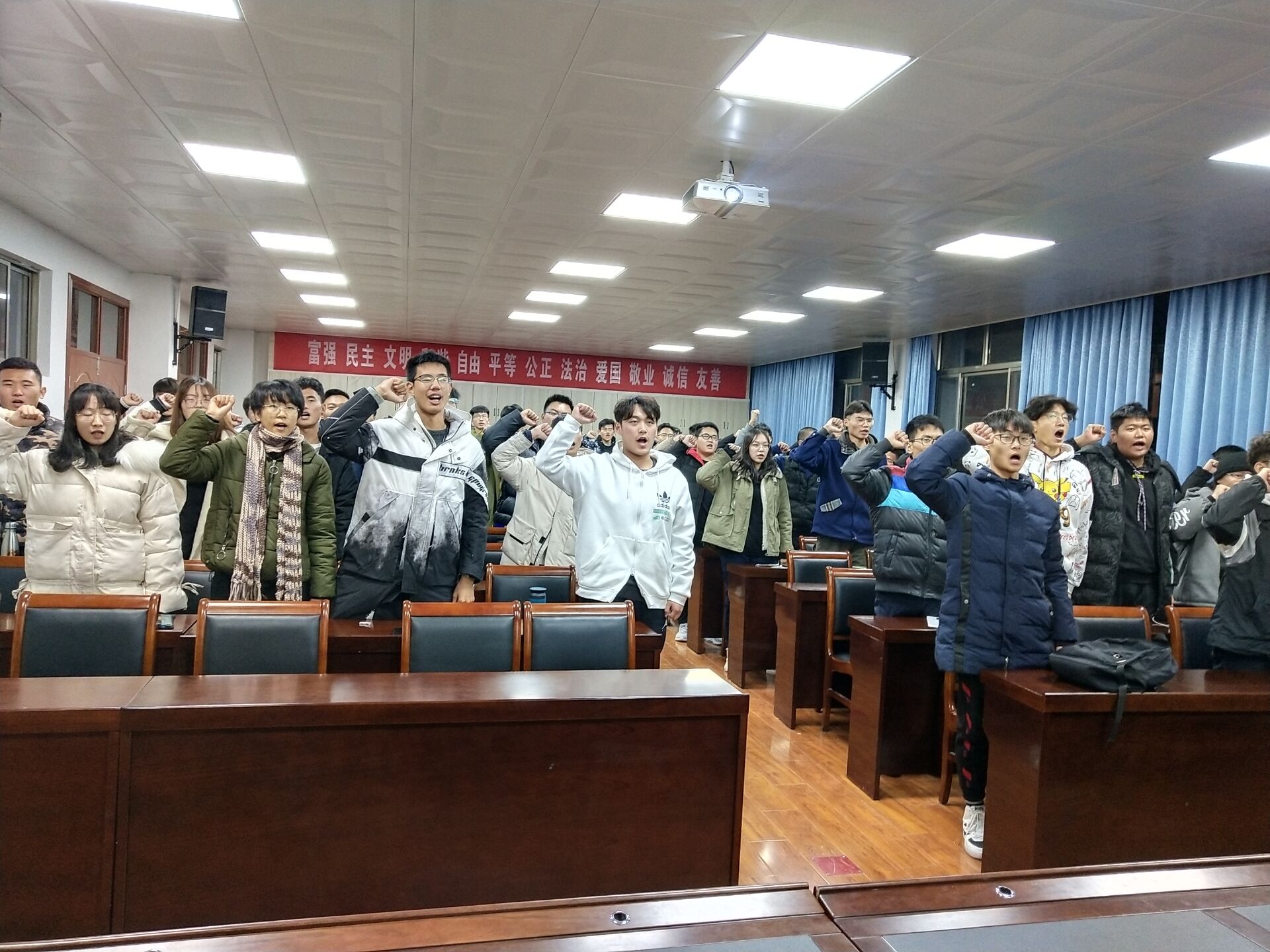 活动开始,同学们观看了视频《大抗战一二九运动》,重温了那段可歌可泣的历史,并深入了解“一二九”运动的背景、发展过程及现实意义。随后,同学们积极地上台分享自己对“一二九”运动精神的感悟与心得,并纷纷表示要充分发扬“一二九”运动的爱国主义精神,做个有理想、有信仰、有追求的爱国青年,以行动爱国,并将所学知识服务于国家,实现自身的理想和人生价值。最后,谯兴龙带领同学们郑重宣誓:“铭记历史,不忘初心,热爱祖国服务人民,勇于拼搏,积极创新,奋发图强,壮我中华。”