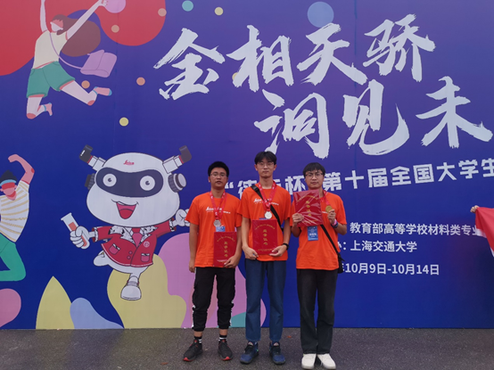 本次比赛由教育部材料类专业教学指导委员会主办、上海交通大学承办的。上海交通大学、清华大学、哈尔滨工业大学、英国威廉集团等370所高校、1109余名选手参加了比赛。我校通过校赛选拔出五位选手,最终我院材料1191班的汤雪聪、孙健、金材1191班的缪鑫铖三位同学凭借出色的表现代表我校参赛。
