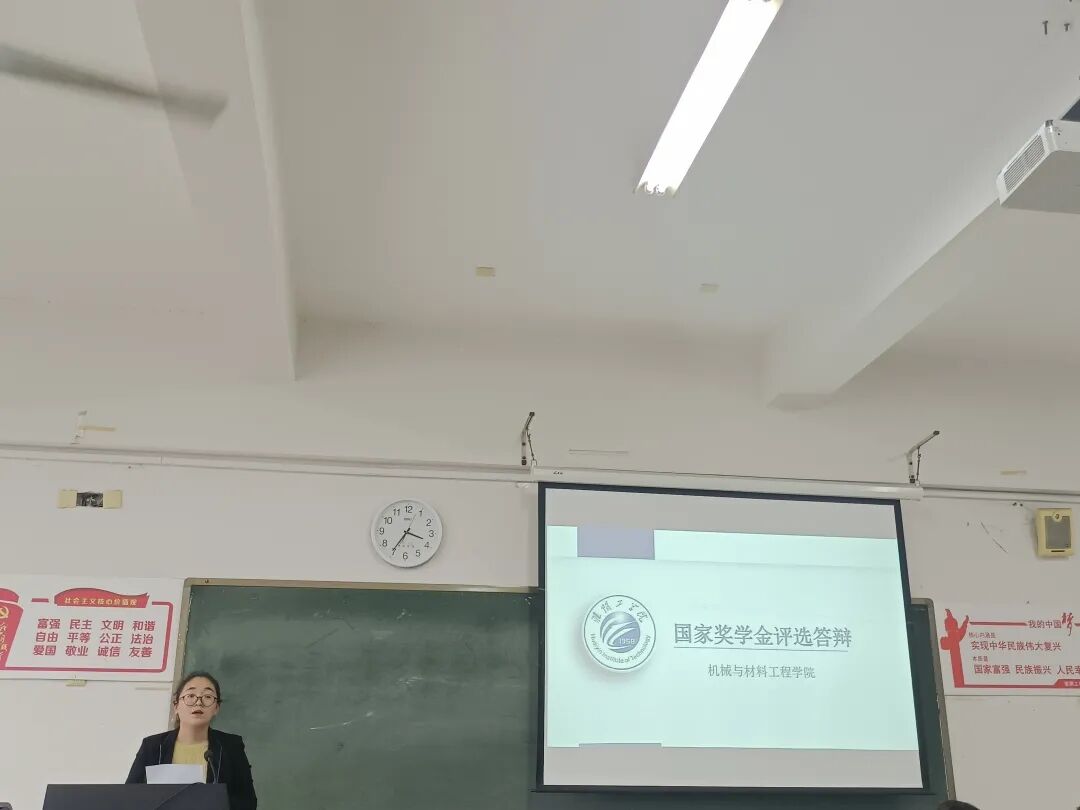 答辩会秉承公开、公平、公正的原则进行,根据事先抽签顺序,在答辩现场每位答辩者进行5分钟陈述。他们结合精心准备的PPT,形式多样的积极展示自己在学习成绩、社会实践、创新能力等方面取得的成绩。经过激烈角逐,最终王小伟、丁琪、倪凯杰三位同学脱颖而出,获得2021年度国家奖学金推荐资格。
