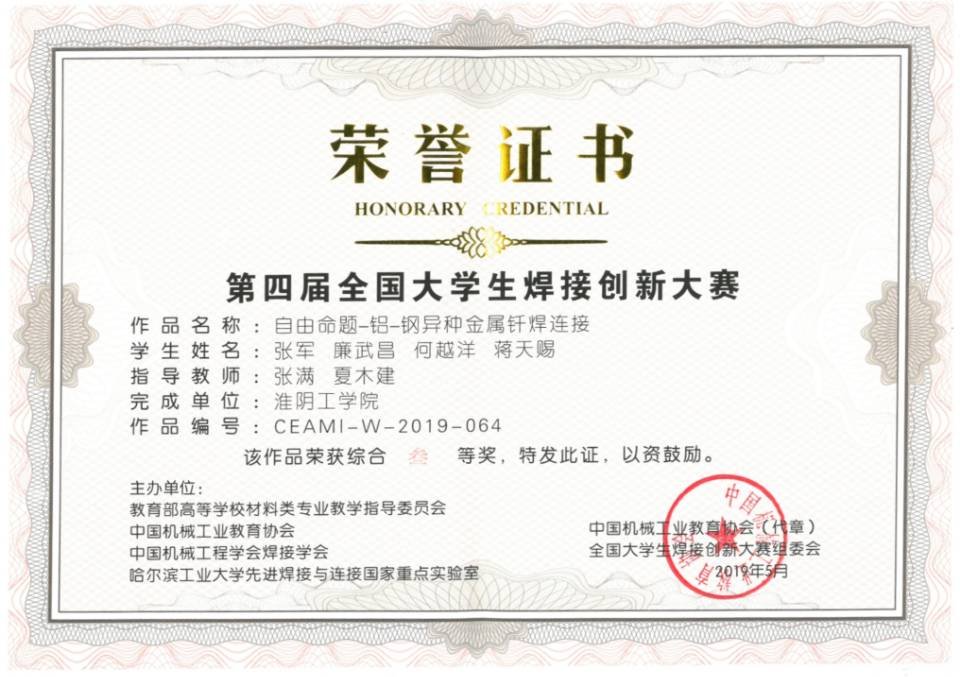 williamhill英国在第四届全国大学生焊接创新大赛上获得佳绩
