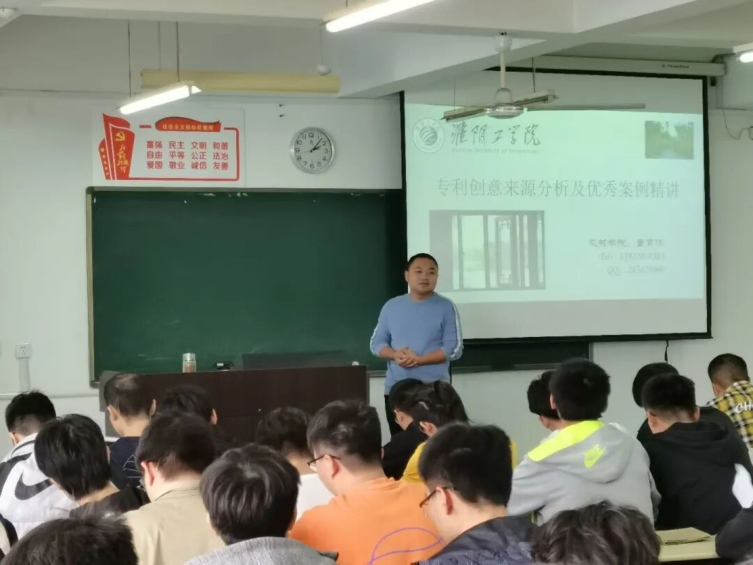 主讲人董育伟老师凭着自己在专利发明界积累的经验和丰富的阅历,给学生讲解及分析了许多专利的创意来源和优秀的案例。董老师在讲座中指出,创意来源于生活,专利发明必须是独一无二的。他在讲座中给我们展示了全自动螺丝刀、危险警示器、爬壁机器人等发明,而这些都是人们在生活中体会出来的创意。此次讲座内容丰富多彩,语言生动幽默且具有哲理,同学们均感到受益匪浅。