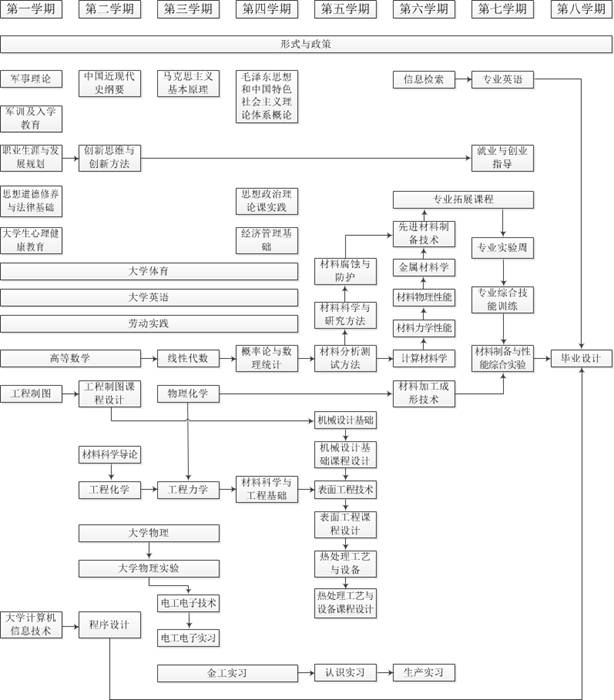 物理化学、材料科学与工程基础、材料加工成形技术、材料力学性能、材料物理性能、先进材料制备技术、表面工程技术、材料分析测试方法、热处理工艺与设备、金属材料学。