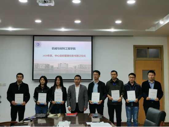 系(中心)负责人、团委、学工办、办公室等负责人向院长高荣递交了年度目标管理任务书。